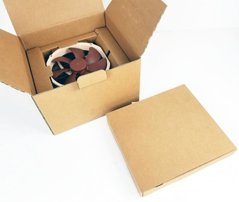 We have used many Noctua heatsinks here in the lab; we see the packaging is similar to other Noctua coolers. It is very compact and well protected through folded cardboard inserts.