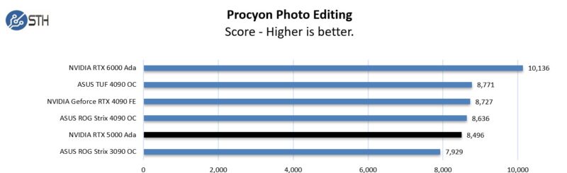 Here we again saw good results with the newer Ada generation. Then from there, the RTX 5000 Ada did fairly well, and was a decent value between the two top-end RTX professional cards.