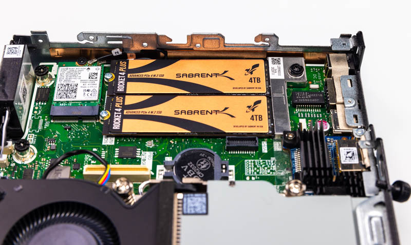 On the storage side, here we are using two 4TB Sabrent Rocket 4 Plus PCIe Gen4 NVMe SSDs for 8TB in total. Some users may look to stripe across those drives, but we are using this configuration to add redundancy.