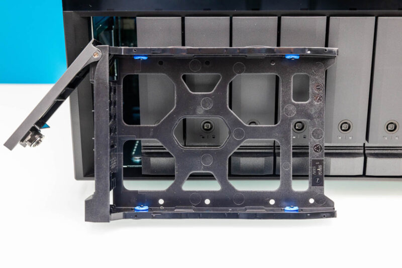 We wish that the drive trays were the same between this and the QNAP TL-D400S Review 4-Bay SATA JBOD DAS Enclosure. It feels a bit crazy that they are different drive trays since that would be an opportunity to standardize.