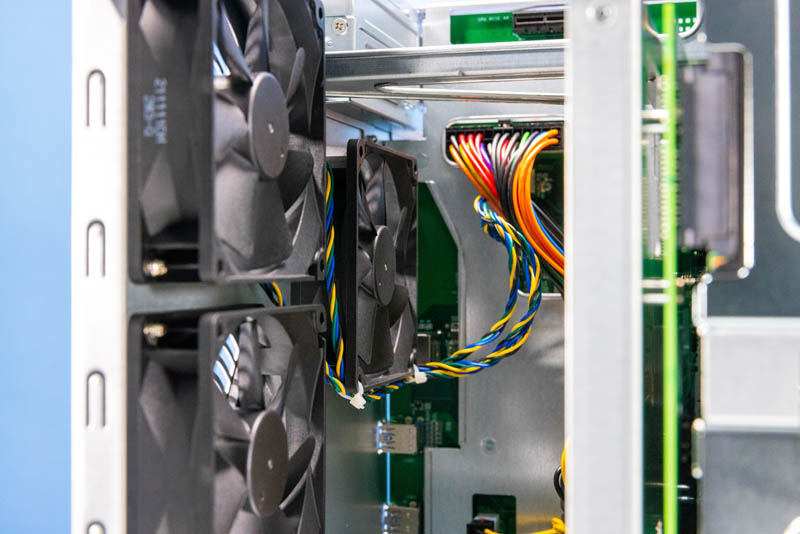 Here is a look at the three internal fans that are wired to the back of the motherboard.