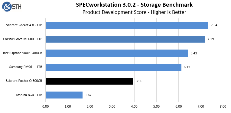 As a PCIe 3.0 NVMe SSD, the Rocket Q 500GB has a good showing here and handles nearly every format this benchmark can test for.