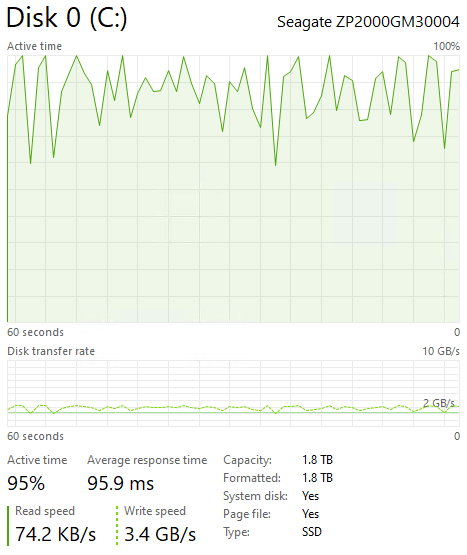 My current method of generating write data for this test caps out somewhere just north of 3 GB/s, so the results for both the Seagate FireCuda 540 and the Sabrent Rocket 4 Plus drives here can essentially be considered to be ‘off the chart’ and I will need to run this test with more threads in the future.