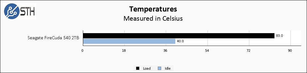 We monitored the idle and maximum temperature during testing with HWMonitor to get some idea of the thermal performance and requirements of the drive.
