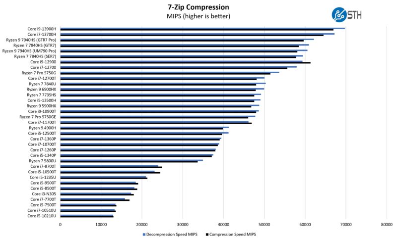 Just as a quick check versus theĀ Beelink SER7 with the AMD Ryzen 7 7840HS here is what we saw: