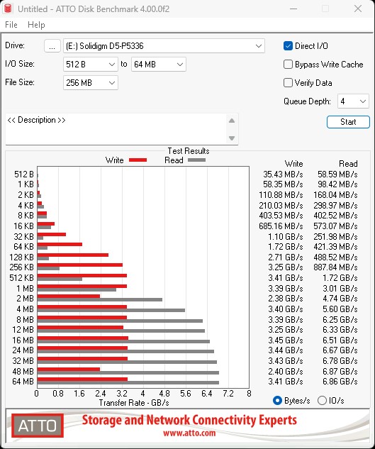 The ATTO Disk Benchmark has been a staple of drive sequential performance testing for years. ATTO was tested at both 256MB and 8GB file sizes.