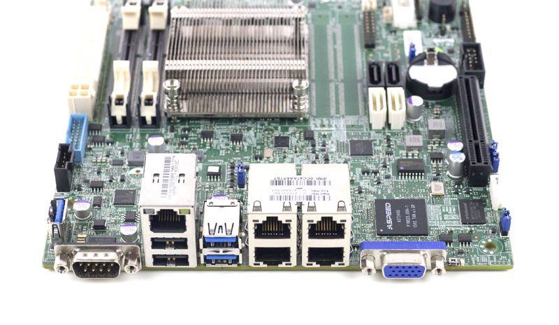 The rear I/O is what we are accustomed to on the Supermicro A1SRi line. There is an array of legacy I/O onboard. There are two USB 2.0 ports, a serial port and a VGA port. Along with these we find an out-of-band IPMI management Ethernet port. Finally there are four gigabit Ethernet ports powered by the Intel i354 MAC. These days, the i354 drivers are integrated into modern OSes.