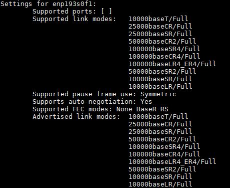 Here is a quick look at the 100Gbps advertised speeds via ethtool:
