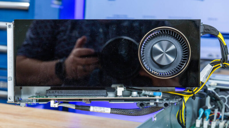In this riser, we have a NVIDIA RTX 6000 Ada. This is a rack mountable workstation, so it is common to have workstation class GPUs installed.