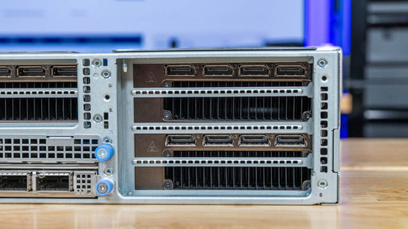 Here we have two more NVIDIA RTX 6000 Ada 48GB GPUs for four total. Supermicro also has other riser options in this chassis, but we are more GPU focused on this one.