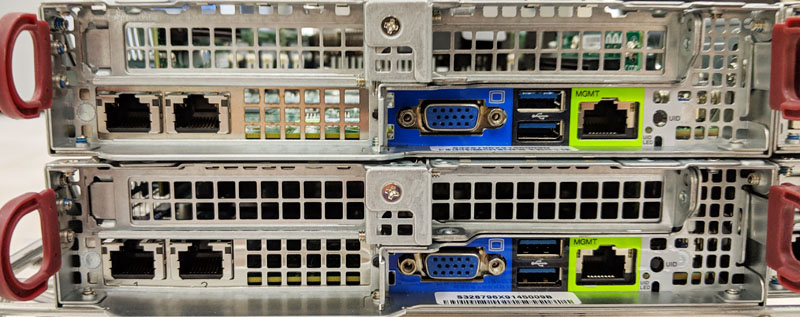 The rear I/O of each node comes with a management port, two USB 3.0 ports, and a VGA port standard. Beyond that, there are three add-on card areas that can be used for additional networking, storage, and accelerators.