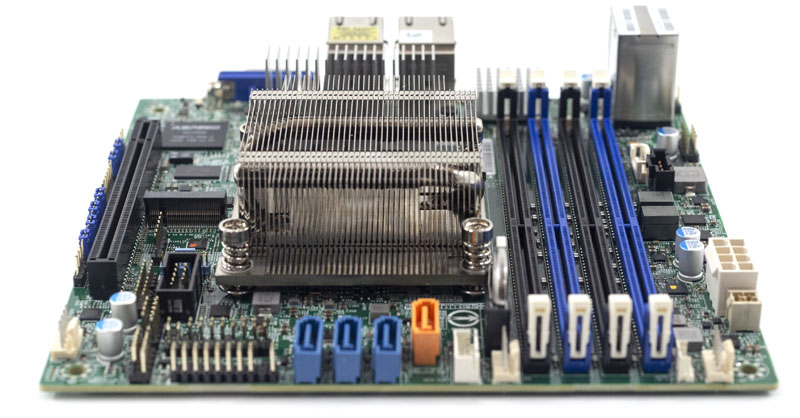 Measuring 6.7″ x 6.7″ the Supermicro M11SDV-4C-LN4F is a compact mITX motherboard like the other M11SDV platforms.