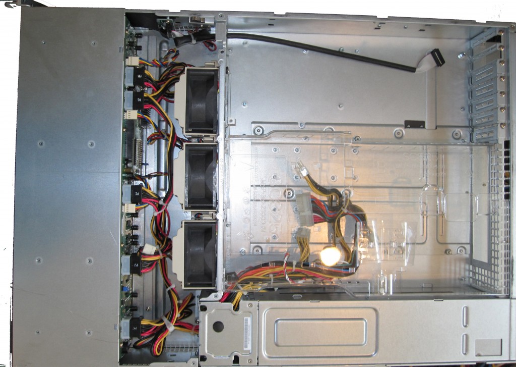 The SC216’s build quality is great, especially when compared to a lot of less expensive alternatives. The chassis is fairly sturdy for a 2U design without too much flex when installed on the rack mount rails. One nice feature is that the cabling has pre-defined routing which is made possible, in large part, because the PSU is included with the chassis. Little touches, like the clear airflow tray, hot-swap fans, easy drive removal and etc. do help to make the chassis quickly serviceable.