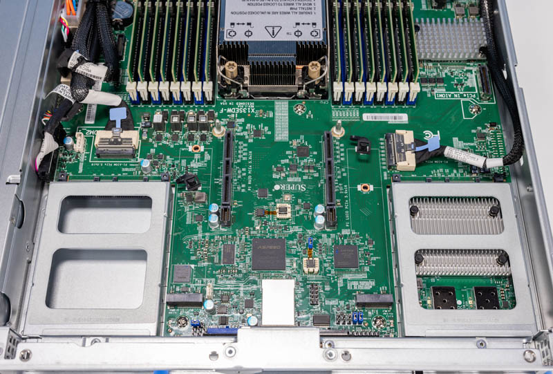 Next to the DIMM slots, we get something very different. The Intel C741 “Emmitsburg” PCH is next to the DIMM slots. On most servers, this is behind the CPU and memory, but since this is a single-socket platform, it can be moved to the side to optimize airflow.