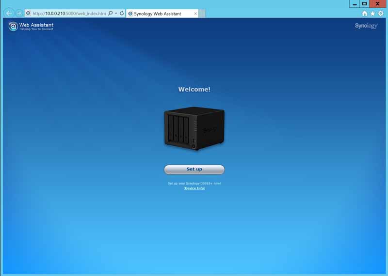 Clicking on the setup button will guide you on getting the DS918+ up and running.