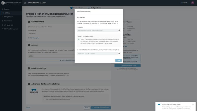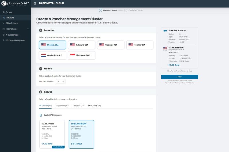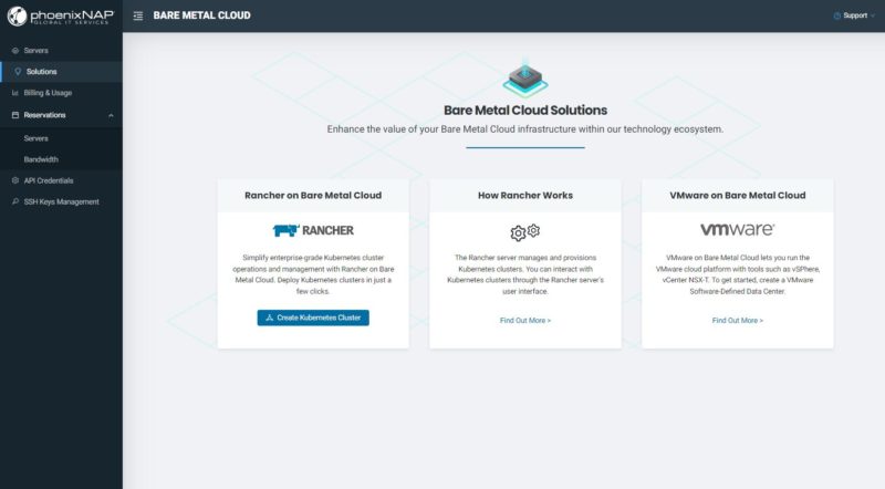 PhoenixNAP also has several solutions that do clustering for you. As an example, one can deploy a Kubernetes cluster built on Rancher (now part of SUSE).