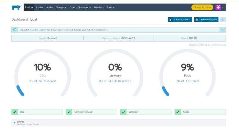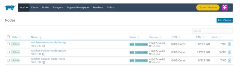 The setup process took around 5 minutes, but once it was done, we had a working Rancher Kubernetes cluster across three nodes.