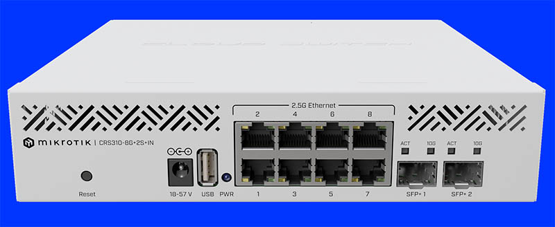 MikroTik just announced its first 2.5GbE and 10GbE switch. The MikroTik CRS310-8G+2S+IN sports 8x 2.5GbE ports and two SFP+ ports that can run in either 10GbE or 2.5GbE modes. What is more, MikroTik is using a well-known Marvell switch chip inside of this unit.