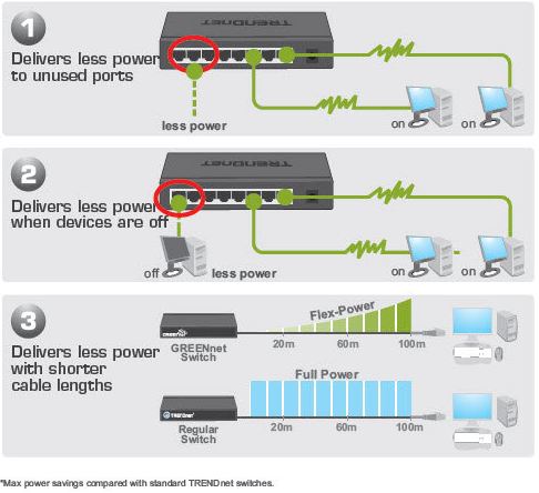 - GREENnet technology reduces power consumption when: