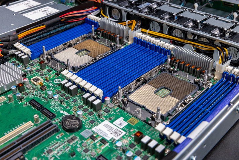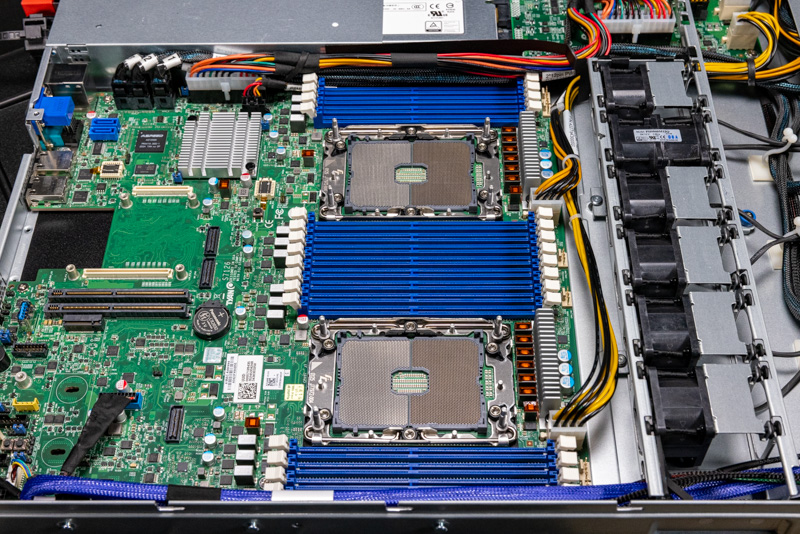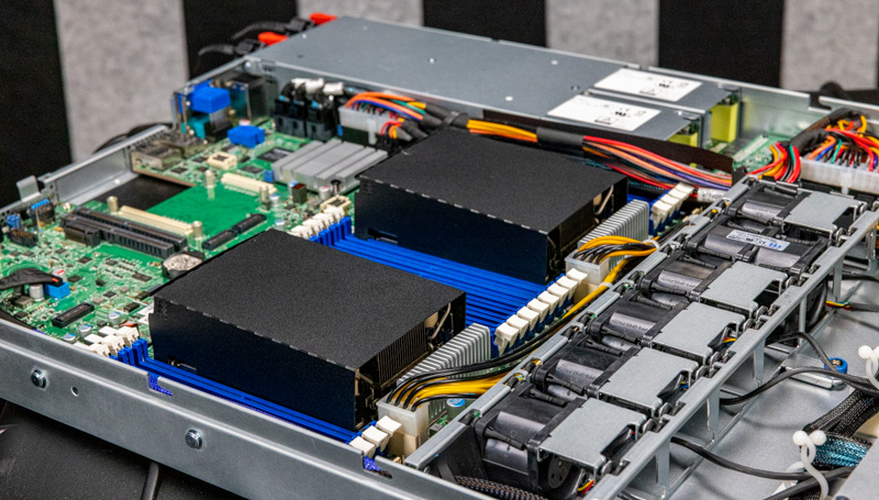 Behind the fans we have the two Intel Xeon Ice Lake CPUs memory, and I/O.