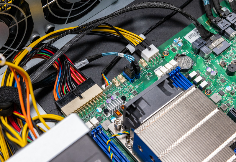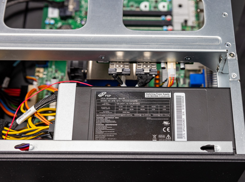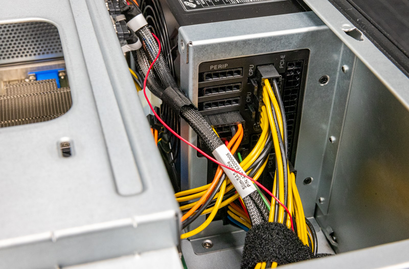 One small area to note is the PSU. The PSU is set up more like an enthusiast PSU so something a bit different is that there is a fan next to the CPU socket that is not aligned to the front to rear airflow. Still, with the big fans, and sitting on the cooler side of the chassis behind the CPU, this is not going to disrupt much airflow.