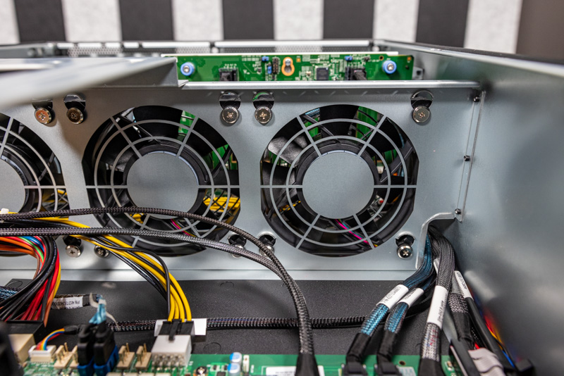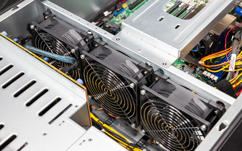In the middle of the chassis, we have a fan partition. Tyan uses three 120mm x 38mm fans to push a lot of air through the system.