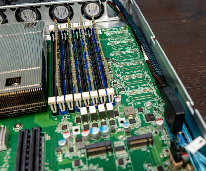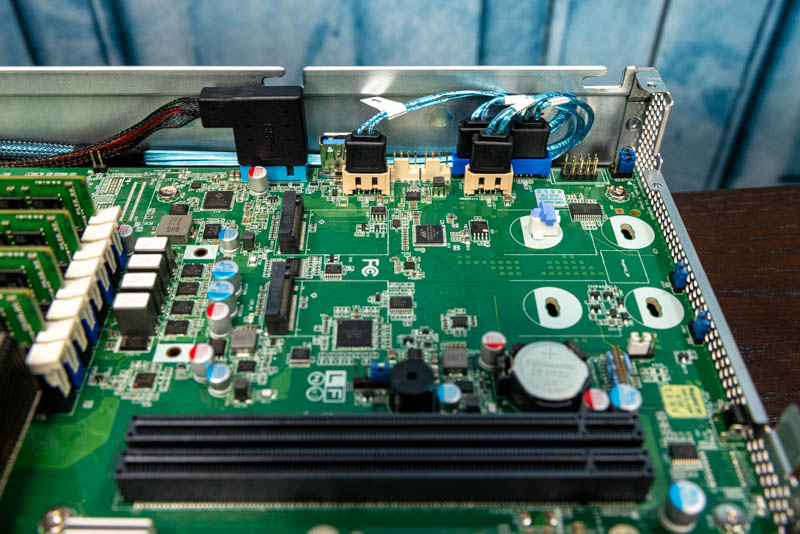 When we discuss cost optimizations, one of the major ones here we can see on the side of the system. Here we can see the de-populated side where there are PCIe connectors on the S8036 non-LE platforms. If you want to see an example of where these are populated, check out our Tyan Transport SX TS65A-B8036 2U 28-bay AMD EPYC Server Review.