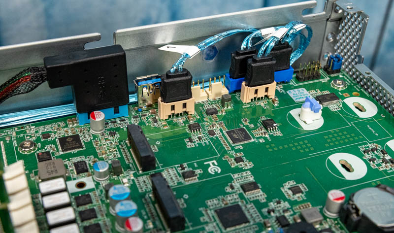 One can see that the SATA and front USB 3.0 cables terminate here. There is also an internal USB Type-A header.