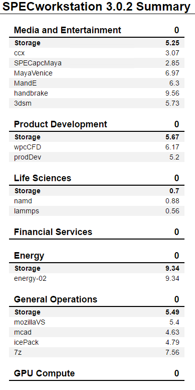 SPECworkstation benchmark is an excellent benchmark to test systems using workstation-type workloads. In this test, we only ran the Storage component, which is fifteen separate tests.