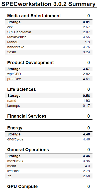 SPECworkstation benchmark is an excellent benchmark to test systems using workstation-type workloads. In this test, we only ran the Storage component, which is fifteen separate tests.