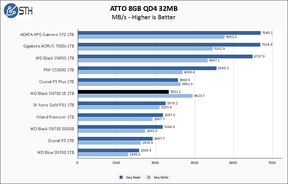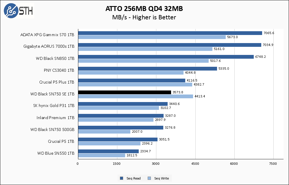 Right off the line the WD Black SN750 SE finds itself among the company of PCIe 3.0 drives. The SN750 SE finds itself among the upper echelon of PCIe 3.0 drives. It does live up to its rated performance specs at least.
