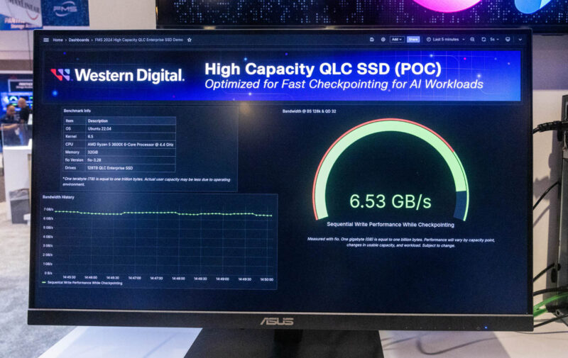 WD is showing the QLC SSD at 6.53GB/s sustained sequential write performance. As a fun bit, this uses an AMD Ryzen 5 3600X series platform since trade show power is expensive. It also means that it is an earlier PCIe Gen4 controller.