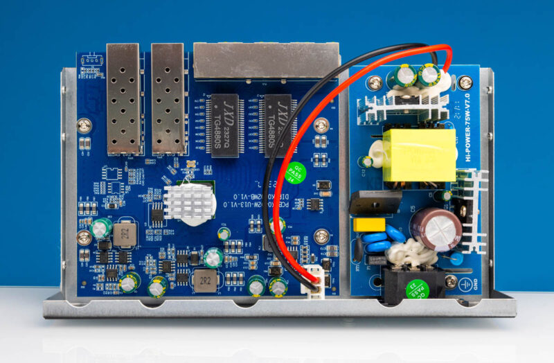 Although the internal PSU is labeled as a V7.0 PSU, it is probably not the fanciest we have seen. However, we did see something else: It is only a 75W PSU. Remember the label says that the switch has 78W of PoE output, and the switch itself, without counting PoE device power, also takes some of that capacity. It feels like for a switch advertising 78W of PoE output, it should have a PSU bigger than 75W. This is the same as the Nicgiga switch.
