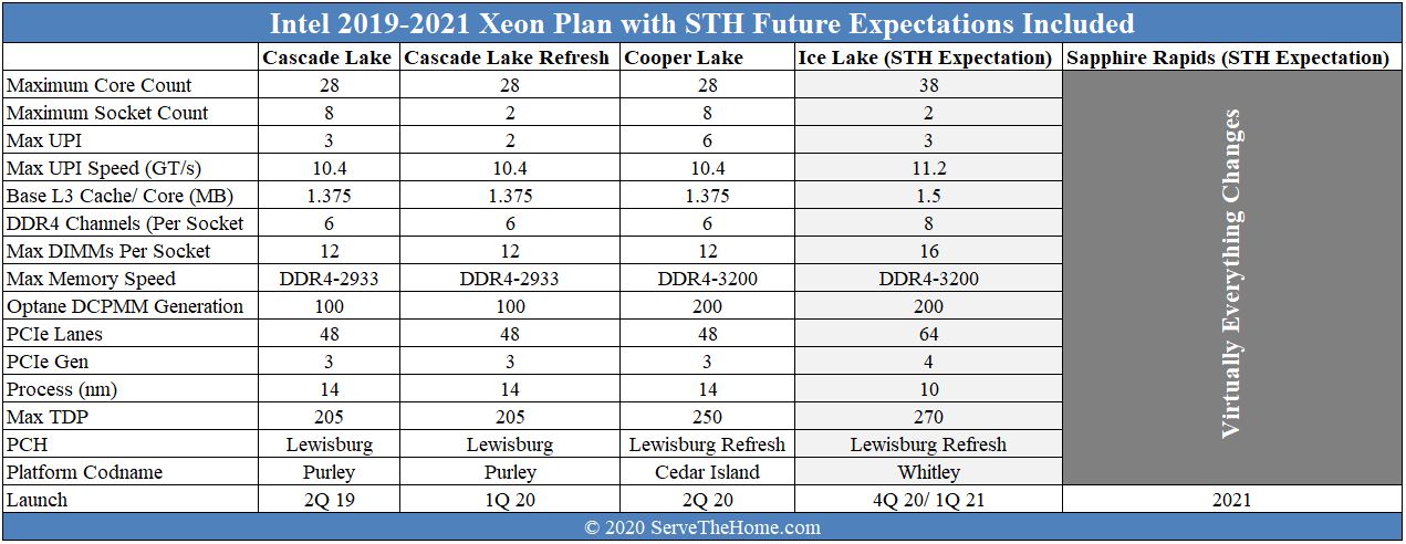 Home3rd Generation Intel Xeon Scalable Cooper Lake Launched for 4P and 8PIntel 2019 2021 Roadmap With STH Expectations Included