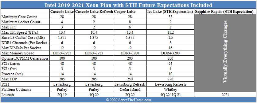 Intel Xeon Scalable Roadmap As Of Q2 2020