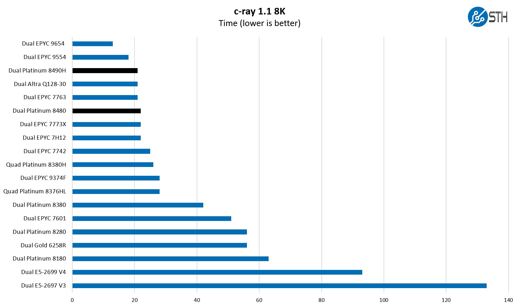 Intel Xeon Platinum 8490H And Platinum 8480 C Ray 8K Benchmark