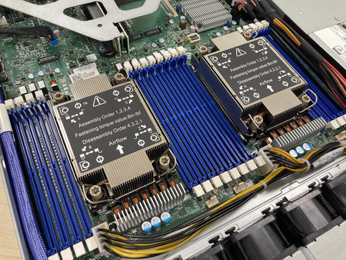 Inside we have two Intel Xeon processors, or to be more precise 3rd Generation Intel Xeon Scalable Ice Lake processors. With this generation, we get 8-channel memory per CPU and up to DDR4-3200 support. Here Tyan is utilizing 8 DIMMs per CPU which is one DIMM per channel.