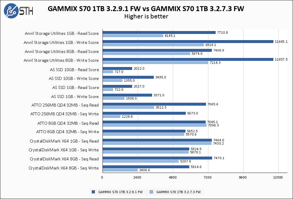 ADATA XPG GAMMIX S70 1TB Firmware Comparison
