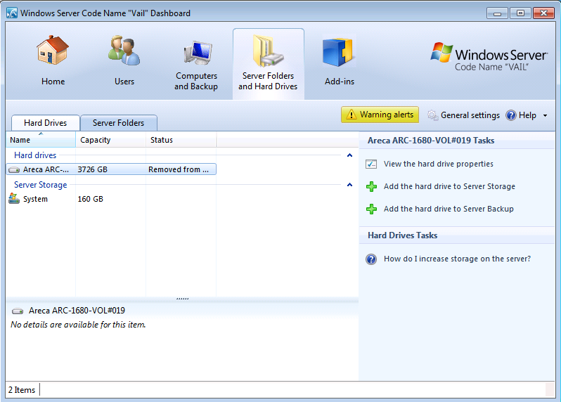 Windows Home Server V2 VAIL Adding a 4TB Disk to pool
