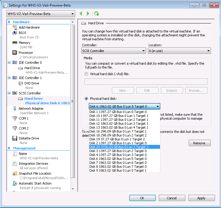 Windows Home Server V2 VAIL Selecting the 4TB Disk