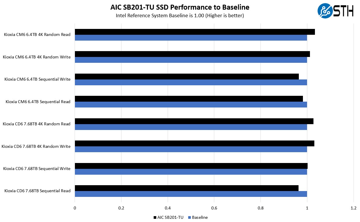 AIC SB201 TU Kioxia CD6 And CM6 SSD Performance To Baseline