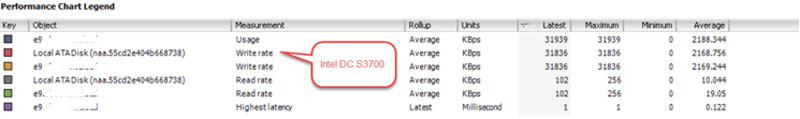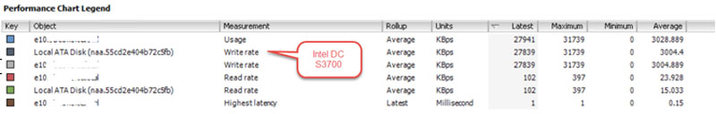 I did a simple IOmeter testing by add another drive on from the vSAN. The result was in line with performance of Intel DC S3700 with 1 MB throughput of 331 MBps and 4 KB random IO of 43956 IOPS.
