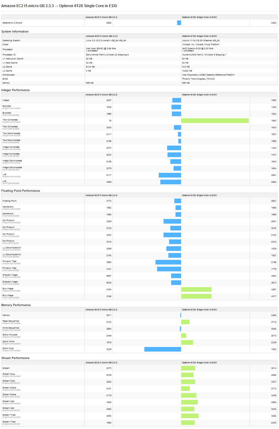 Amazon EC2 t1.micro Geekbench v AMD Operon 6128 ESXi 5.0
