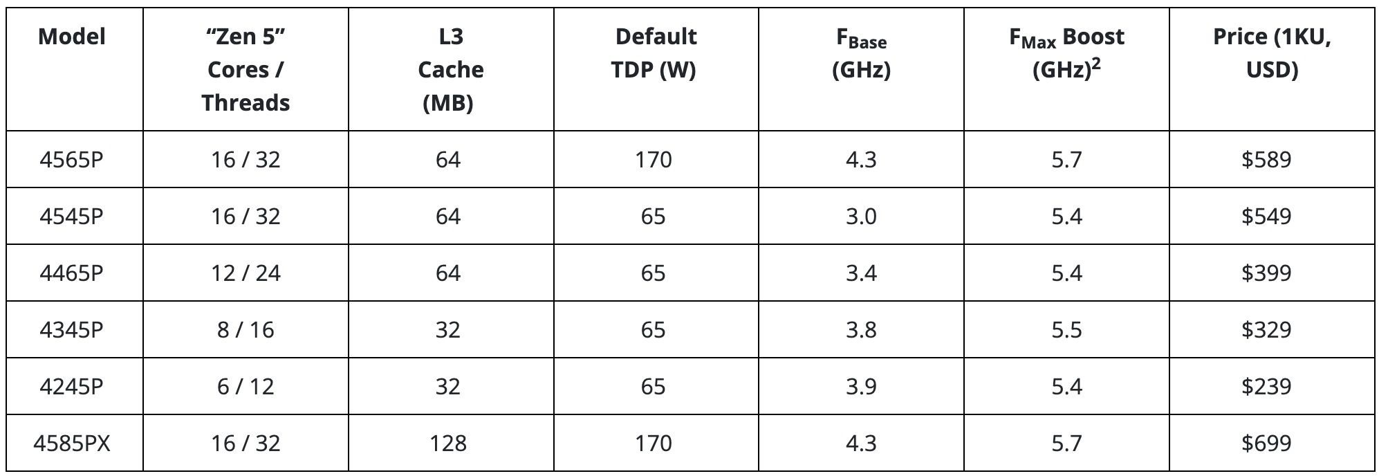 AMD EPYC 4005 Grado SKU List With Pricing
