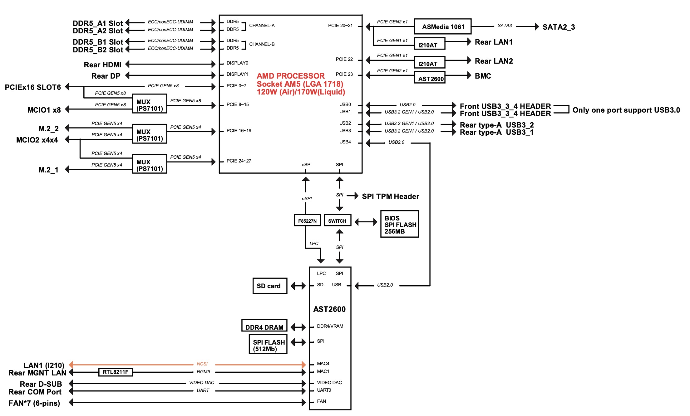 ASRock Rack EPYC4000D4U Block Diagram
