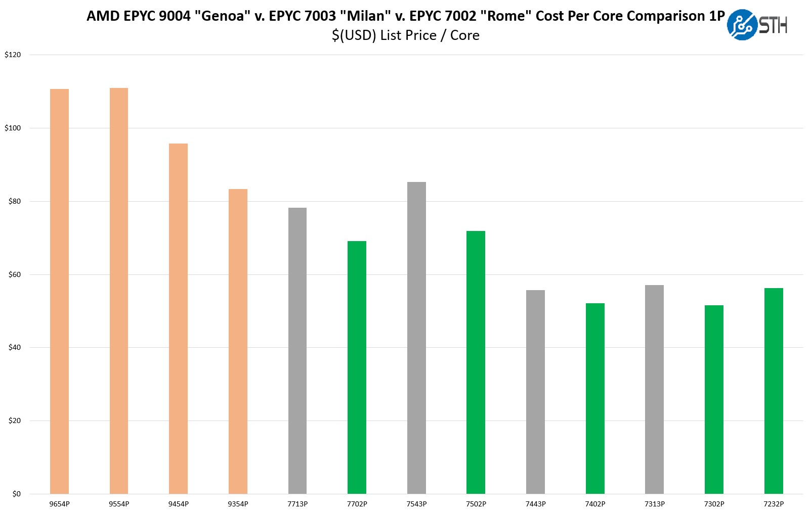 AMD EPYC 9004 Genoa 1P Generational Cost Per Core