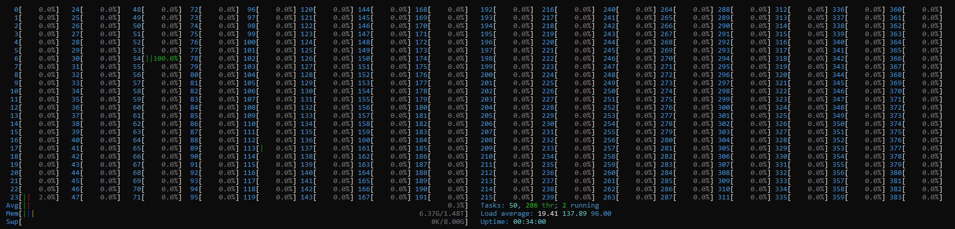 AMD EPYC 9654 2P 384 Thread HTOP 1 Core