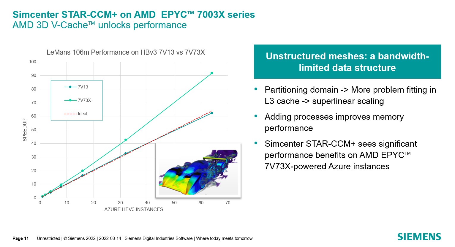 Siemens Simcenter STAR CCM+ With AMD Milan X Speedup