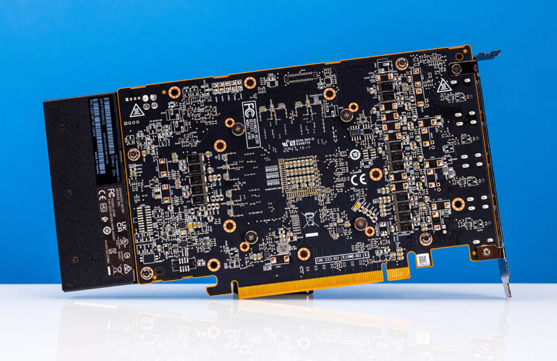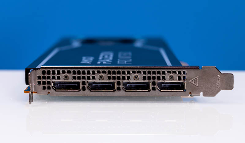 Here is the quad DisplayPort 2.1 output on the back of the card and the single slot bracket. That is one of the advantages of the single-slot full-height card as one does not have to resort to using mini-DP.