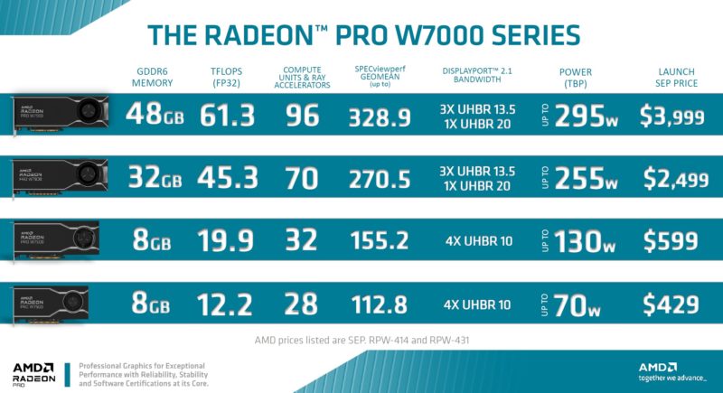 These new cards join the higher-end AMD Radeon Pro W7900 and W7800 GPUs that cost several times as much.
